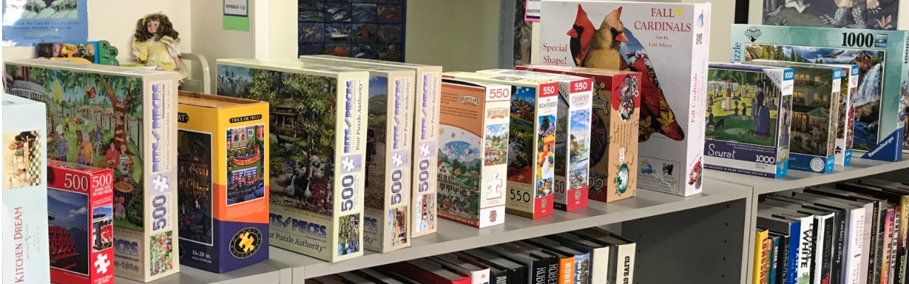 We accept donations of gently used books in great condition for all ages. Puzzles are especially welcome! We do not accept textbooks, computer manuals, dirty, damaged, discolored or mildewed items.
